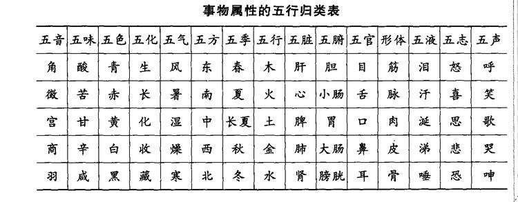 想做醫生的需要背誦記憶五行歸類表,中醫愛好者理解之后飄過。