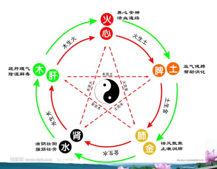 同樣,人體的五臟也對應了這五種特性。五行的作用不只是分類,它更是指明了這五種特性之間的相互作用、相互運行。兩兩相鄰的關系是母子相生,比如補腎水可以滋養肝木,培脾土可以養肺金等。而相隔的兩者關系是相克和制約,比如肝木旺盛,則起克制和減弱脾土的作用。所以,如果一個人大怒,肝氣上逆,其實,可能會傷害到脾土(主運化,也就是消化能力)。發脾氣果然能實質性地懟到脾胃的消化能力。