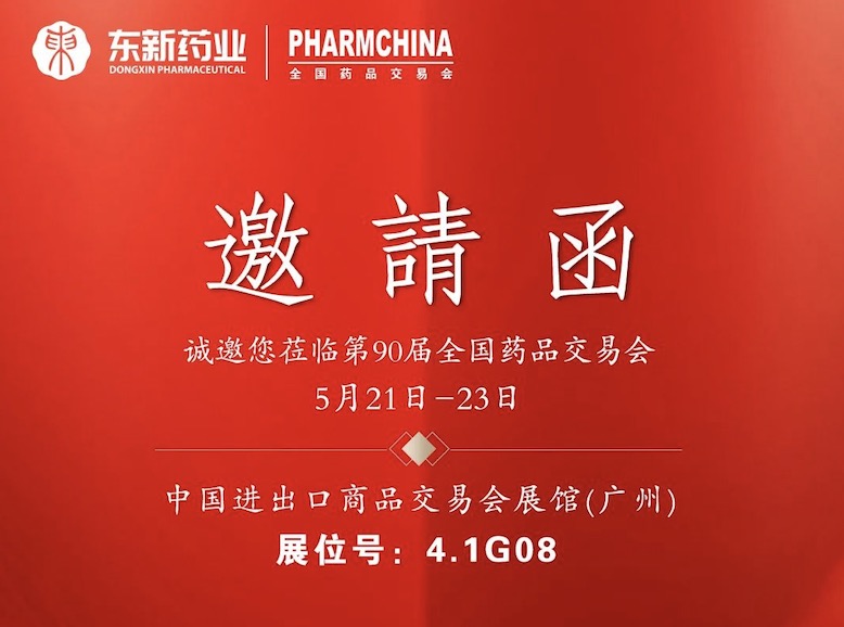東新藥業誠邀您(nin)蒞臨第90屆全(quan)國藥品交易會(hui):東新藥業擁有200多(duo)個產品批文,將陸(lu)續(xu)上(shang)市,敬請(qing)關注!